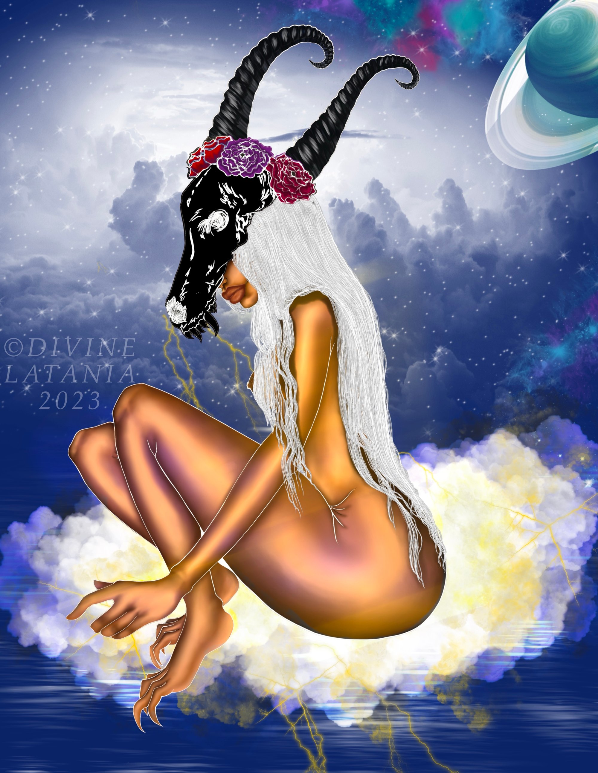 Inspired by and unknown artist who paints skulls, Capricornus is sometimes identified as Enki the God of creation, intelligence, crafts, fertility, semen, magic, mischief.